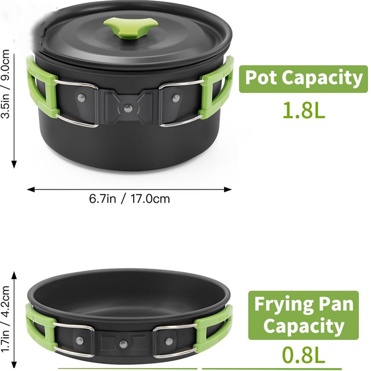 Κατάλληλο για διάφορες πηγές θερμότητας, όπως σόμπες κατασκήνωσης, ανοιχτές εστίες και φορητές ψησταριές. Οι κατσαρόλες και τα τηγάνια χειρίζονται τα πάντα, από το βραστό νερό μέχρι το τηγάνισμα των γευμάτων με ευκολία.