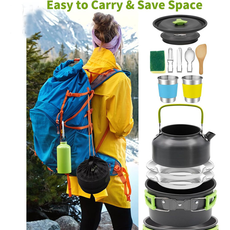 16 τμχ Μαγειρικά σκεύη κάμπινγκ, Σετ μαγειρικής κάμπινγκ Κατσαρόλα κάμπινγκ. Ολοκληρωμένη λύση για την εξωτερική κουζίνα σας. Αυτό το σετ μαγειρικών σκευών Camping 16 τεμαχίων περιλαμβάνει κατσαρόλες, τηγάνια, φλιτζάνια, πιάτα και σκεύη. Σχεδιασμένο για ολοκληρωμένα γεύματα κάμπινγκ, παρέχει όλα όσα χρειάζεστε για μαγείρεμα και φαγητό στην ερημιά.