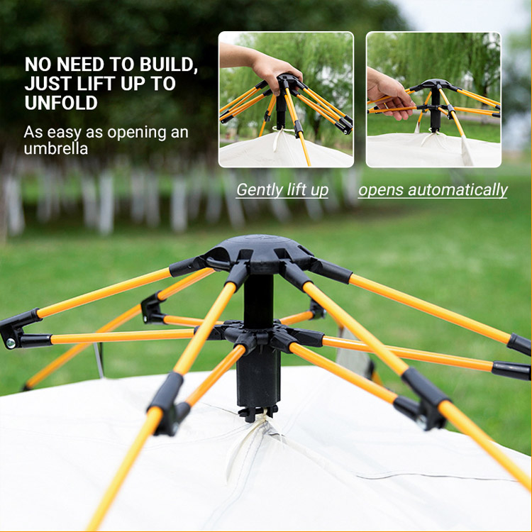 Διαθέτει πρωτοποριακή τεχνολογία αυτόματου ανοίγματος που επιτρέπει στη σκηνή να αποκτήσει πλήρη μορφή μέσα σε δευτερόλεπτα, εξαλείφοντας τις περίπλοκες διαδικασίες συναρμολόγησης και εξοικονομώντας πολύτιμο χρόνο κατασκήνωσης.