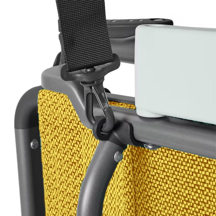 Περιλαμβάνει μια ανθεκτική, ελαφριά τσάντα μεταφοράς με ιμάντα ώμου για εύκολη μεταφορά. Όταν διπλώνεται, η καρέκλα διατηρεί ένα λεπτό προφίλ που ταιριάζει τέλεια στο πορτμπαγκάζ και στους αποθηκευτικούς χώρους του αυτοκινήτου.