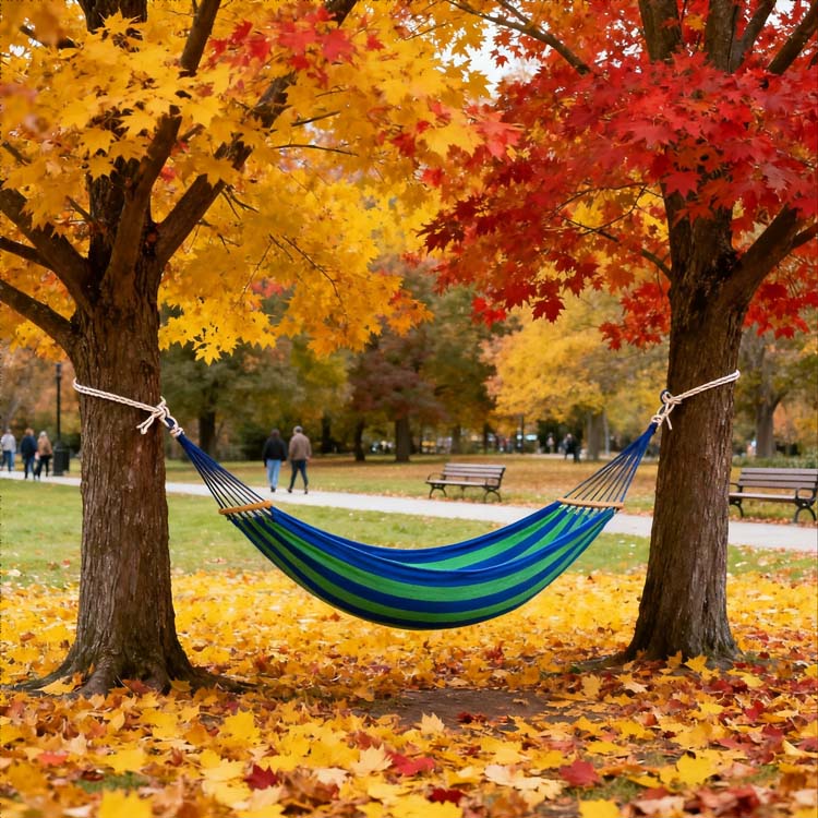 Άνετη αιώρα από καμβά 2 ατόμων για υπαίθριο χώρο. Η τέλεια σόλο απόδρασή σας για υπαίθριες περιπέτειες. Αυτή η αιώρα κάμπινγκ για ένα άτομο διαθέτει ανθεκτική κατασκευή από ύφασμα ταφτά με σκούρα καραμπίνερ και ρυθμιζόμενα λουριά δέντρων. Σχεδιασμένο για μέγιστη άνεση και εύκολη εγκατάσταση, είναι ο ιδανικός σύντροφός σας για χαλάρωση στην άγρια φύση.