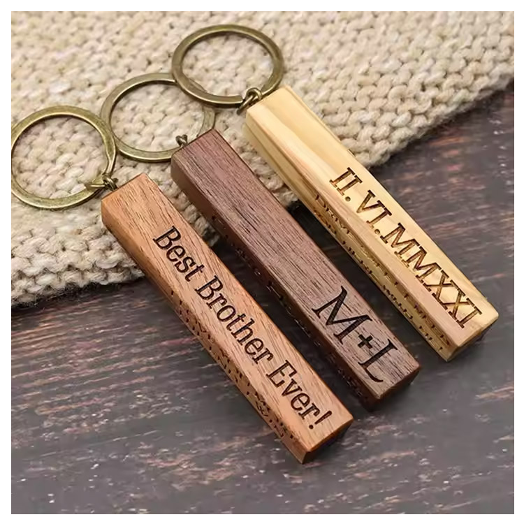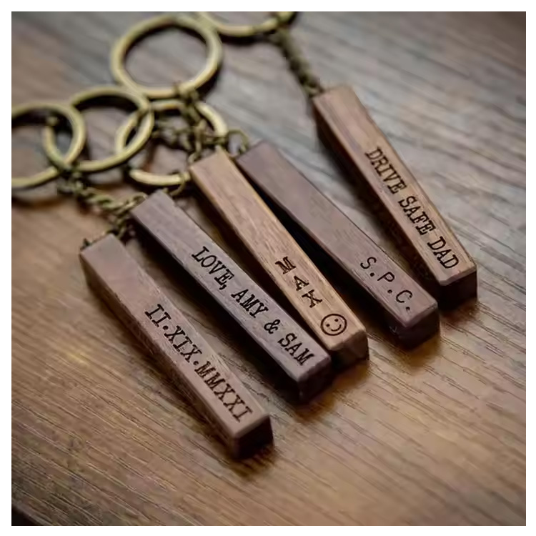 Κάθε keychain διαθέτει ένα όμορφα χειροποίητο ξύλινο κρεμαστό κόσμημα που υπογραμμίζει την παραδοσιακή χειροτεχνία. Η φυσική υφή και το ρουστίκ φινίρισμα το καθιστούν ένα μοναδικό κομμάτι ιδανικό για όσους εκτιμούν τις καλλιτεχνικές λεπτομέρειες και τα σχέδια εμπνευσμένα από τη φύση.