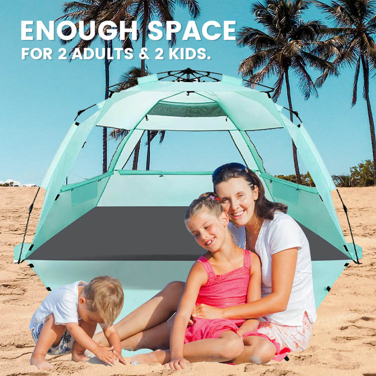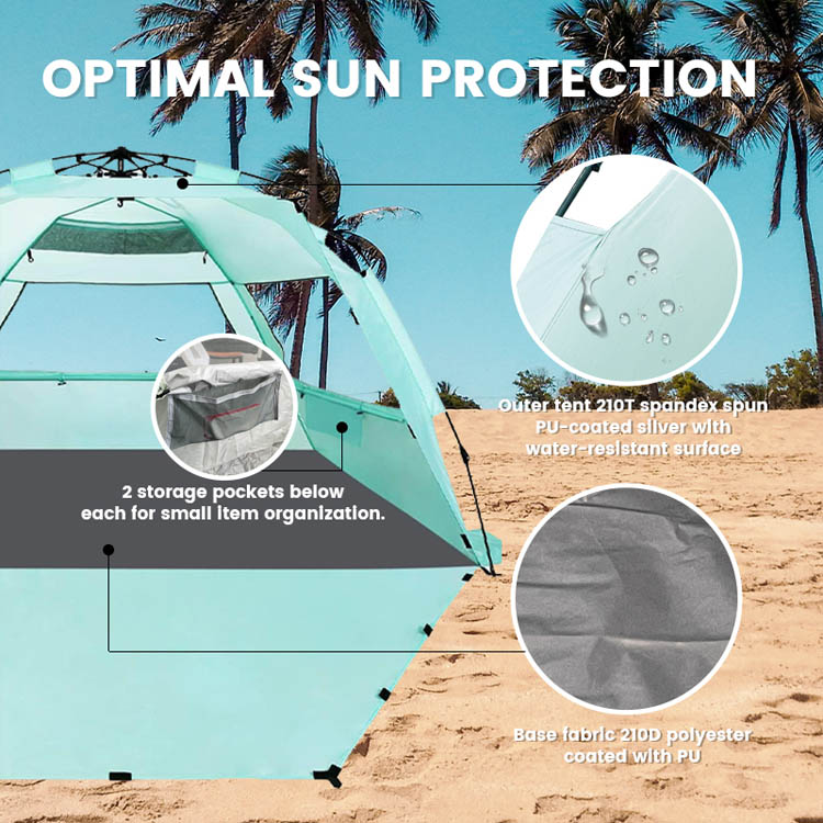Το εξειδικευμένο ύφασμα με ασήμι μπλοκάρει το 98% των επιβλαβών ακτίνων UV διατηρώντας παράλληλα εξαιρετική ροή αέρα, δημιουργώντας μια δροσερή σκιασμένη περιοχή για παρατεταμένη παραμονή στην παραλία.