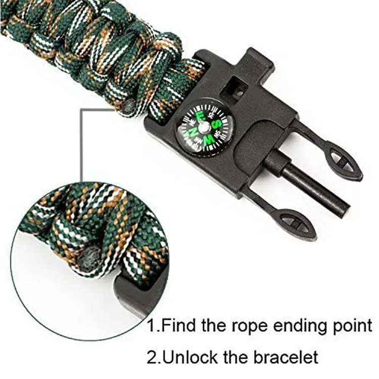 Το paracord μπορεί να ξετυλιχτεί για να δημιουργηθεί ένα σχοινί έκτακτης ανάγκης για την κατασκευή καταφυγίων, την επισκευή εργαλείων, τα σενάρια πρώτων βοηθειών και αμέτρητες άλλες ανάγκες επιβίωσης σε συνθήκες άγριας φύσης.