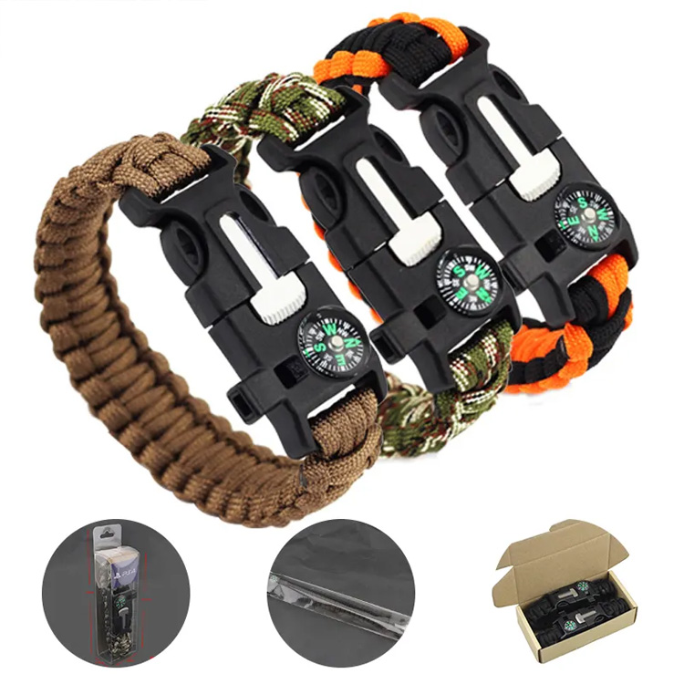 Χονδρικό βραχιόλι Sample Survival 550 LBS Tactical Paracord. Ο βασικός σας εξοπλισμός επιβίωσης για υπαίθριες περιπέτειες. Αυτό το βραχιόλι Tactical Paracord διαθέτει αξιοσημείωτη αντοχή 550 LBS. Ιδανικό για κατασκήνωση και καταστάσεις έκτακτης ανάγκης, προσφέρει τόσο πρακτική χρησιμότητα όσο και κομψό σχεδιασμό. Διαθέσιμο για χονδρική πώληση με δωρεάν δείγματα.